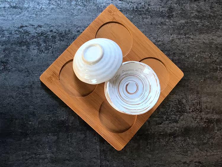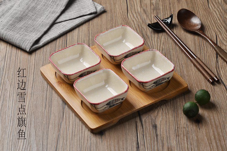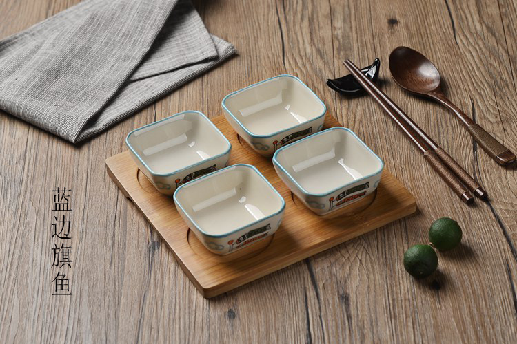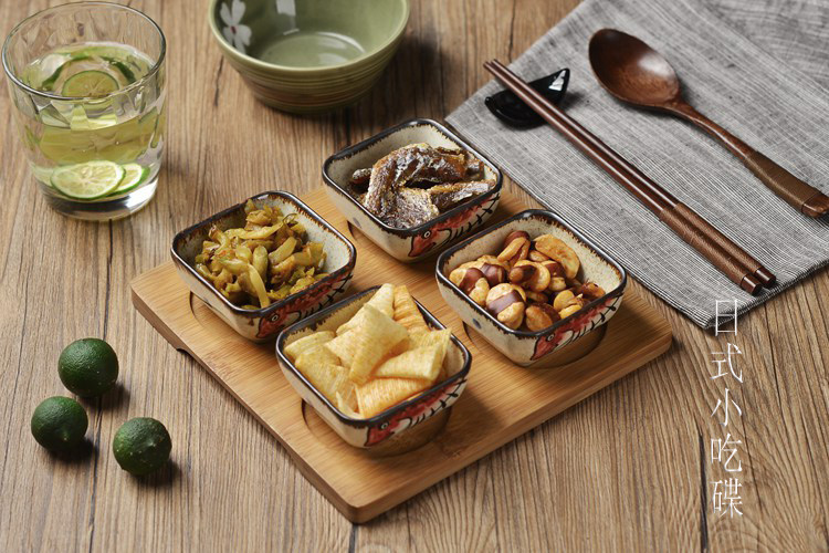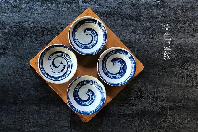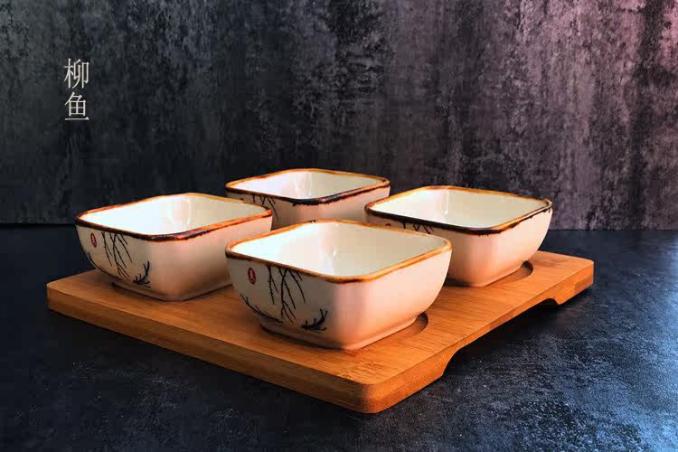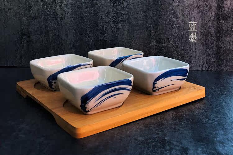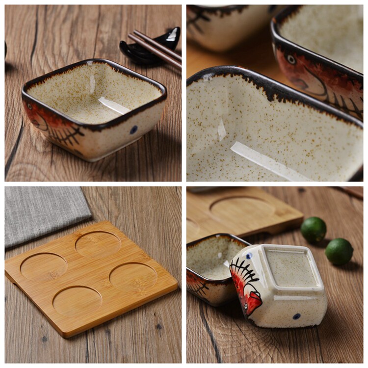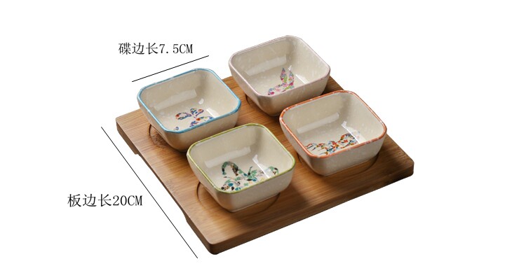 日式小吃碟子创意调味碟 陶瓷点心碟小吃盘 配竹底座 手绘釉下彩