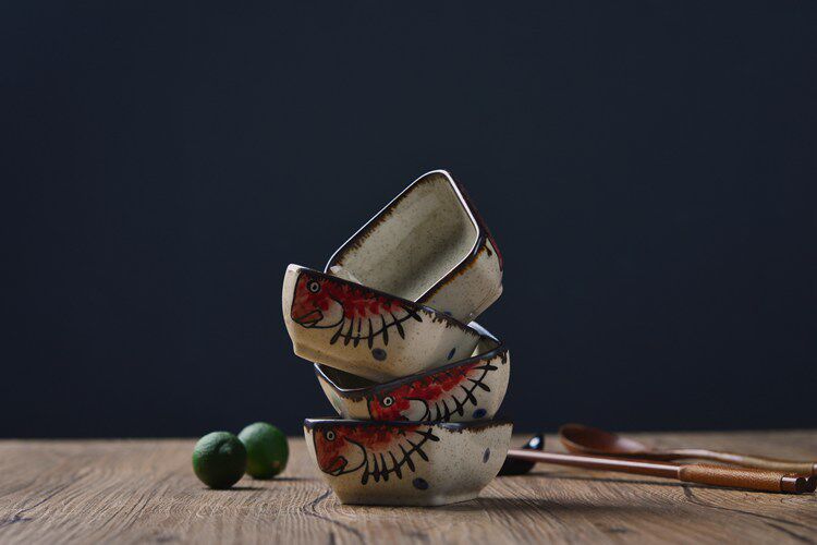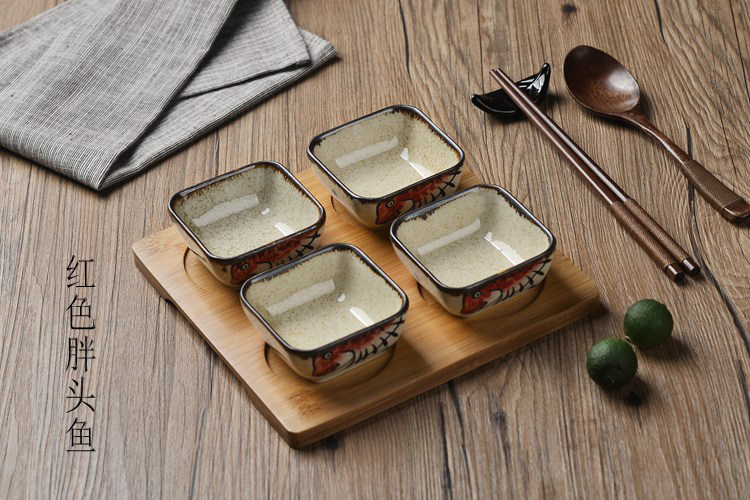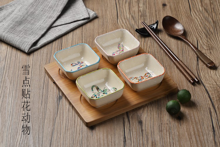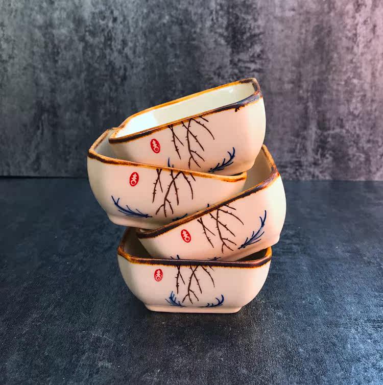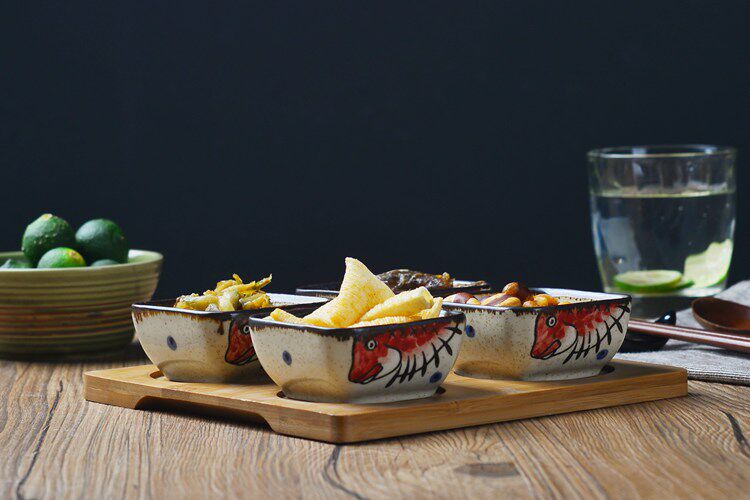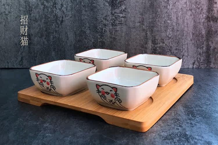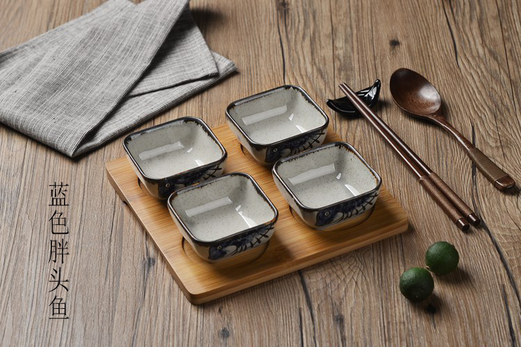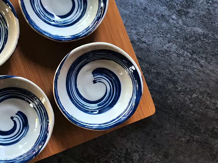 日式小吃碟子创意调味碟 陶瓷点心碟小吃盘 配竹底座 手绘釉下彩
