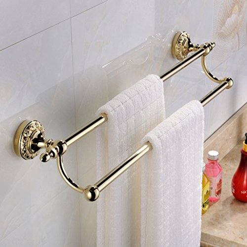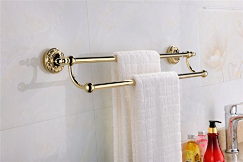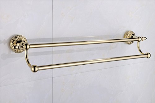 Leyden Wall Mount Bathroom TI-PVD Gold Finish Brass Material Double Towel Bars Racks