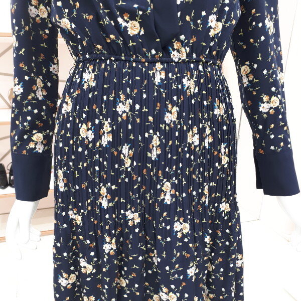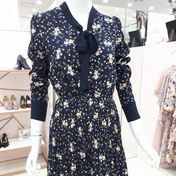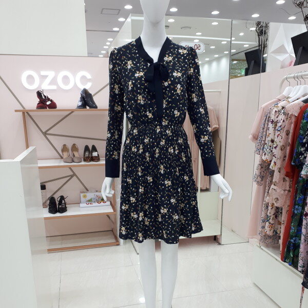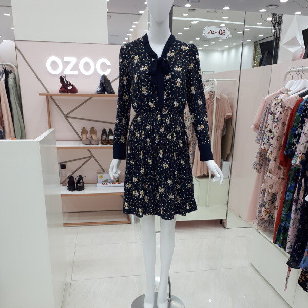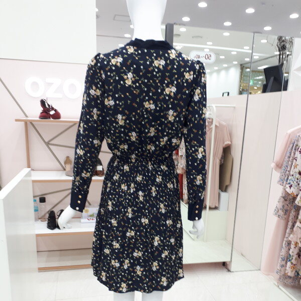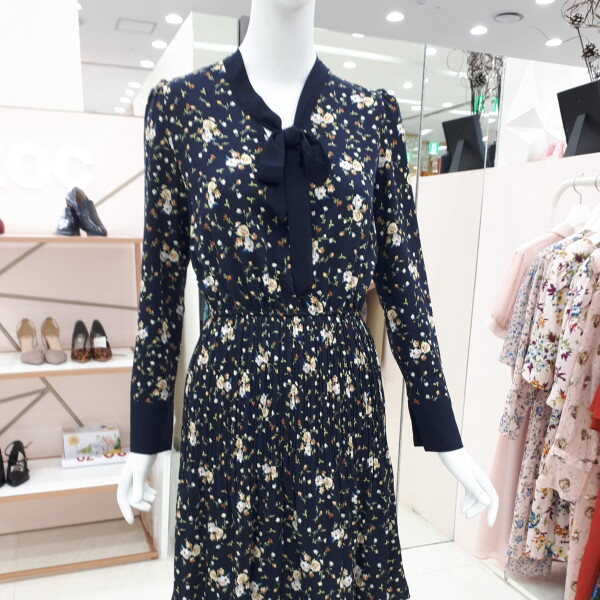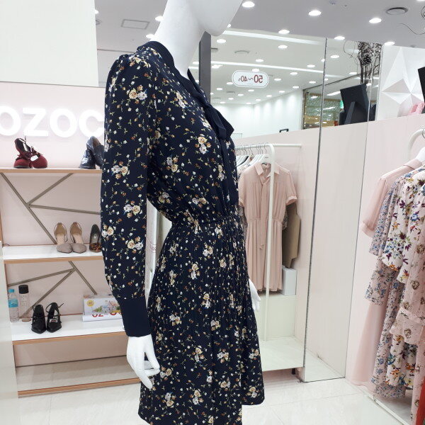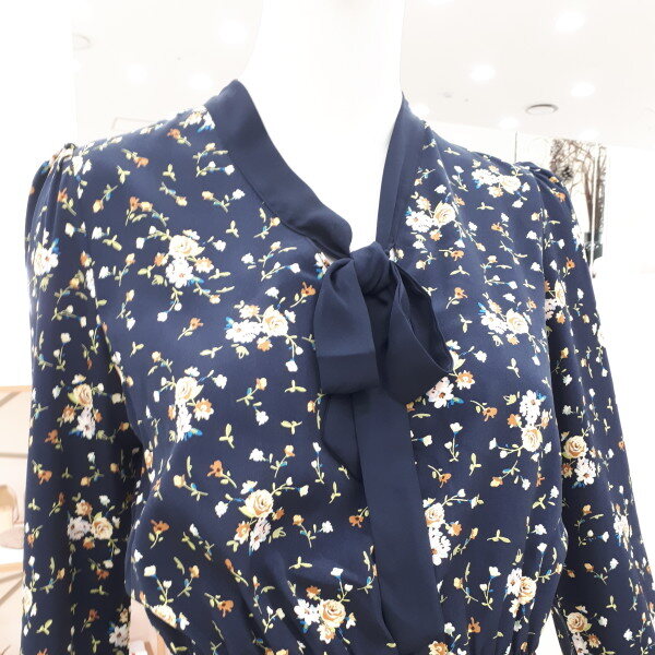 자잘한 꽃무늬에 깔끔한 리본이 여성스럽습니다 정장으로도 입으실수 있고 편안한 자리에도 부담없이 입으실수 있는 이쁜 원피스입니다