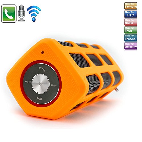-. Feature : Support directly streaming music from media players via the aux-in port or playing wireless music through Bluetooth technology. / Waterproof and dust-proof, resistant to water splashes, perfect companion for outdoor activities. / Also features 7000mAh power bank function, satisfies the need of power hungry devices while on-the-go. / Patented Sound Technology: Full-bodied stereo realized through dual full-range drivers and a unique patented spiral bass port. / This outdoor speaker can easily be used in a backpack or bike, ideal for personal use, indoor party or outdoor BBQ or picnic with friends and family.