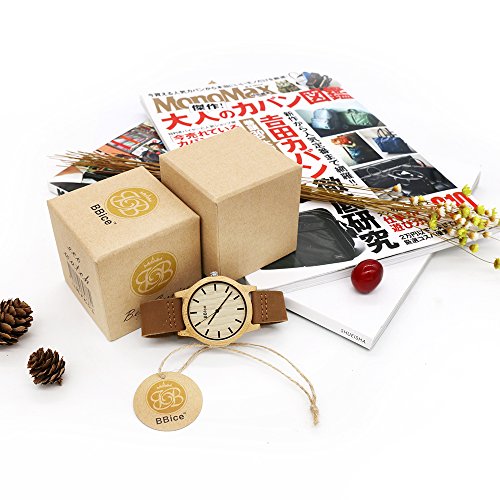 목제 손목시계 우드 워치 대나무의 나무 맨즈 레이디스 남녀 겸용 고급 브랜드 손목시계 천연 목조각 일본제 쿼츠 아날로그모델 생활 방수 환경에 친절하 선물 【일본 브랜드 BBice3