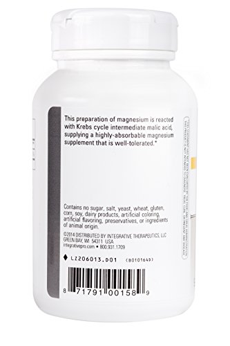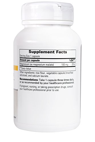 Provides 100 mg of elemental magnesium per capsule to support cellular metabolism. This preparation of magnesium is converted to the Krebs cycle intermediate malic acid, supplying a highly-absorbable magnesium supplement. A component of over 300 enzymatic processes in the body, magnesium provides nutritional support for muscles and bones, as well as for several physiological functions including energy production and healthy cardiac function.