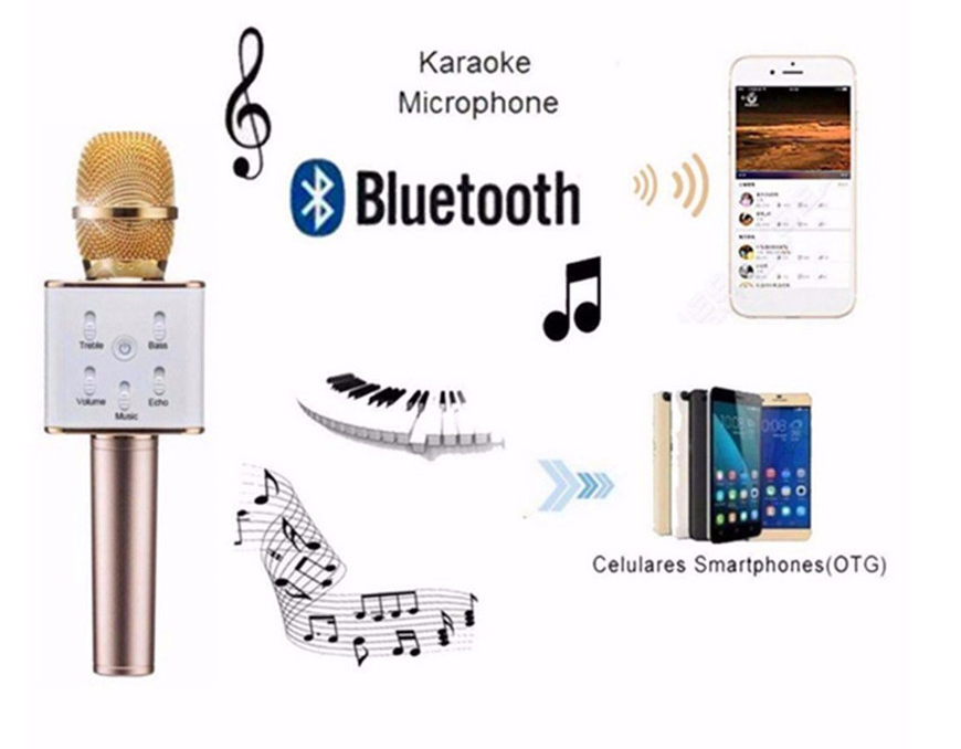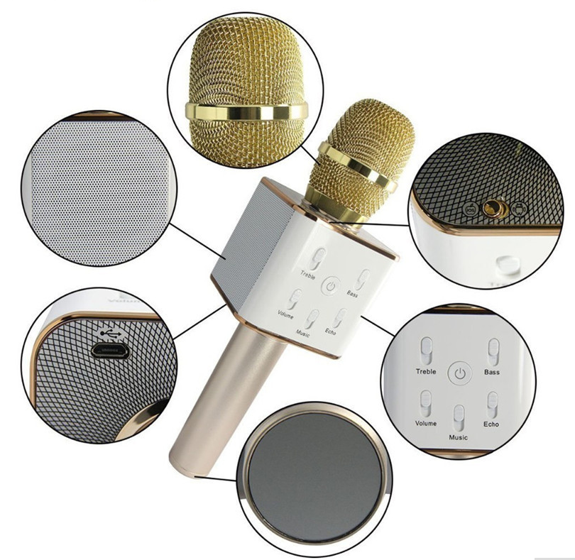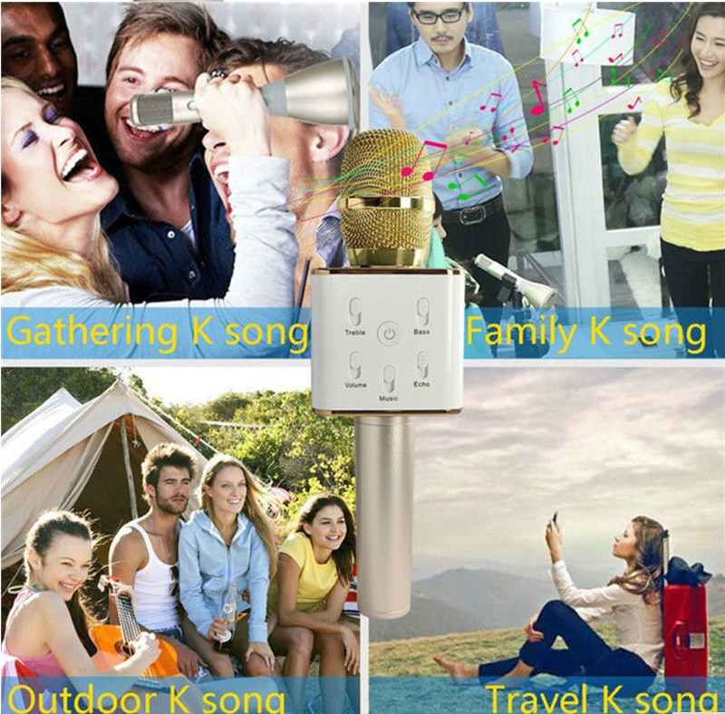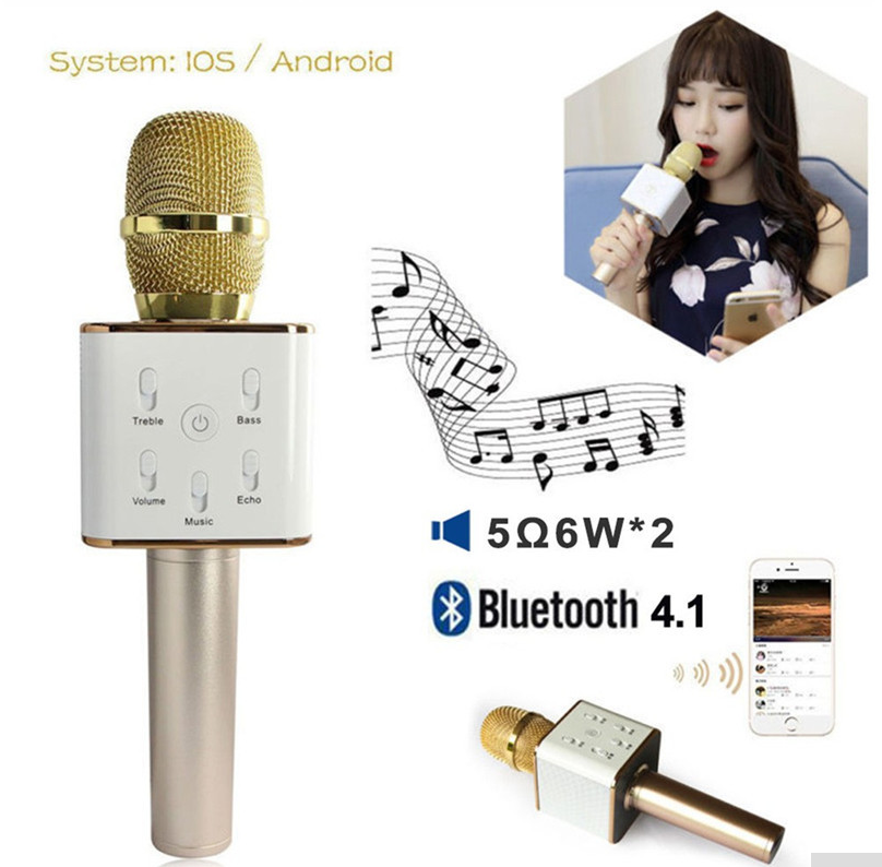 Hot Q7 Mini Karaoke Player Wireless Condenser Microphone with Bluetooth Mic Speaker Singing Record for Smart Phones Computer