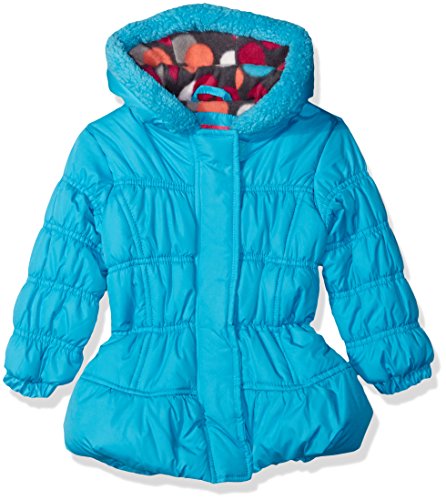 Pink Platinum Little Girls' Puffer Jacket With Multi Dots Lining and accessories, Turquoise, 6X