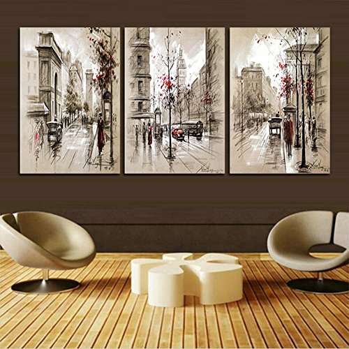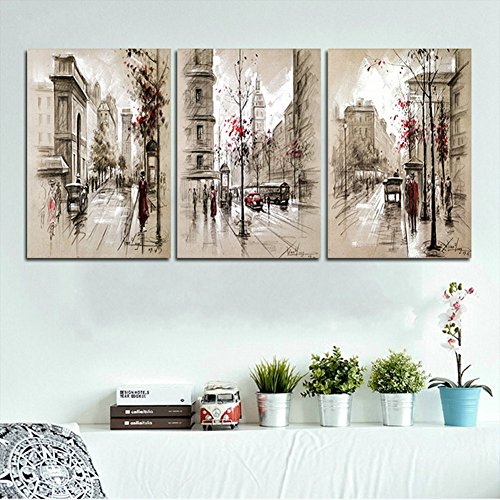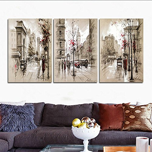 -. Title : H.COZY Modern home decoration abstract painting canvas Retro Street Pictures city landscape decorative paints 3 Panel Wall Art (unframed) far68 12x20 inch