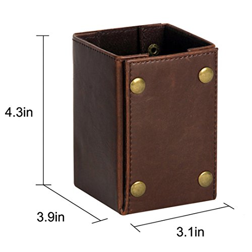 Felice Square PU Leather Pens Pencils Holder Desktop Organizer Collection Container Box (brown)