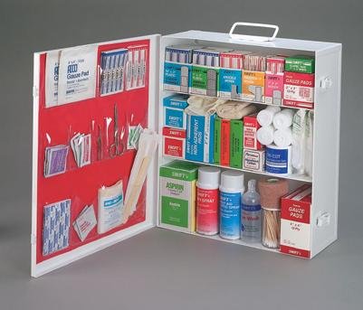 -. Title : Radnor Three-Shelf 25 Person Durable Metal Industrial First Aid Cabinet
