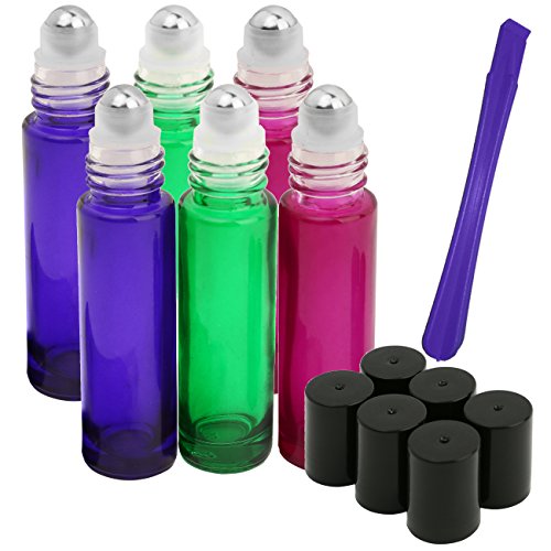 Roller Bottles - 10ml Premium Quality Glass Refillable Essential Oil Roller on Bottles with Lid Opener Pry Tool (FREE GIFT), Set of 6 for Aromatherapy, Essential Oils, Perfumes and Lip Balms By JamHoo