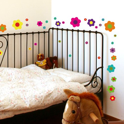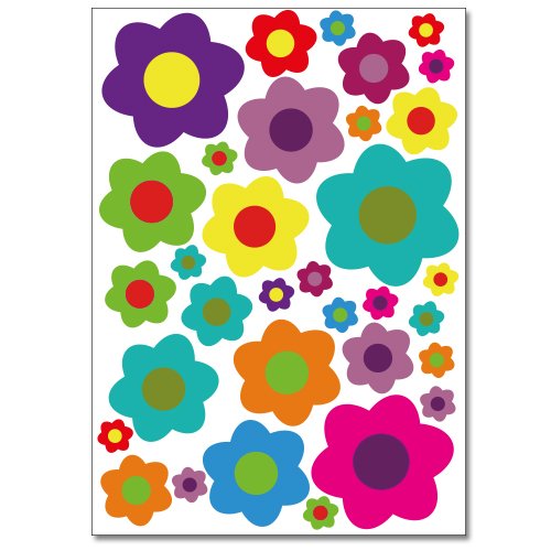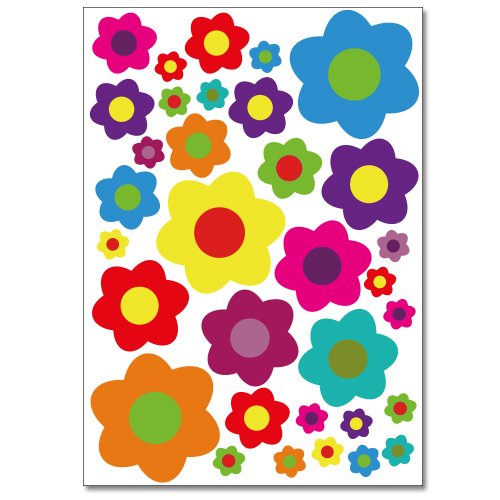 -. Title : Wandkings wall stickers Colourful Flowers – Design 4 Sticker Set – 66 stickers on 2 US letter sheets (each 8.3 x 11.7 inch)
