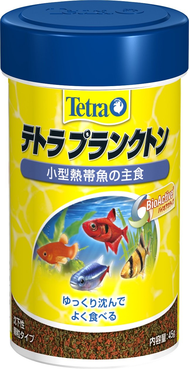 サイズ:45g 商品紹介 ●小型熱帯魚の主食●ネオンテトラ、カージナルテトラなどの小型熱帯魚用に開発された小さな顆粒タイプの沈下性フードです。緩やかに浮遊沈下するのでムラなく公平に与えられます●スピルリナを多く含み、魚の活力を増進するとともに美しい色彩を引き出します●優れた嗜好性と消化吸収で食べ残しやフンが減り、水槽の水を汚しません。