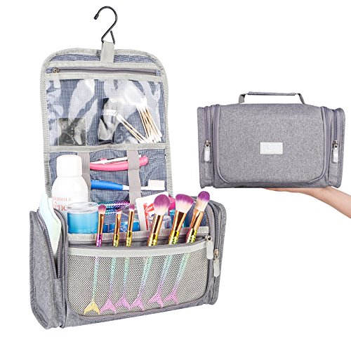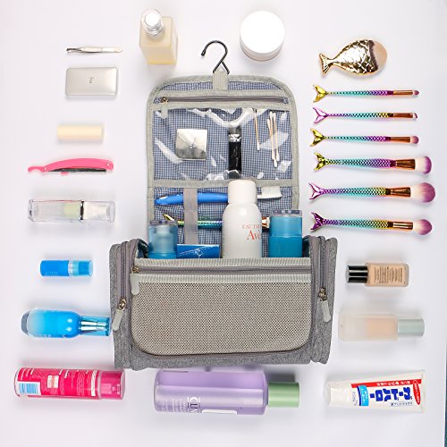 Rosefray Hanging Toiletry Bag, Portable Travel Cosmetic Makeup Bag for Women; Shaving Kit Organizer Bag for Men; Household Bathroom Storage Pack for Business and Vacation-Gray