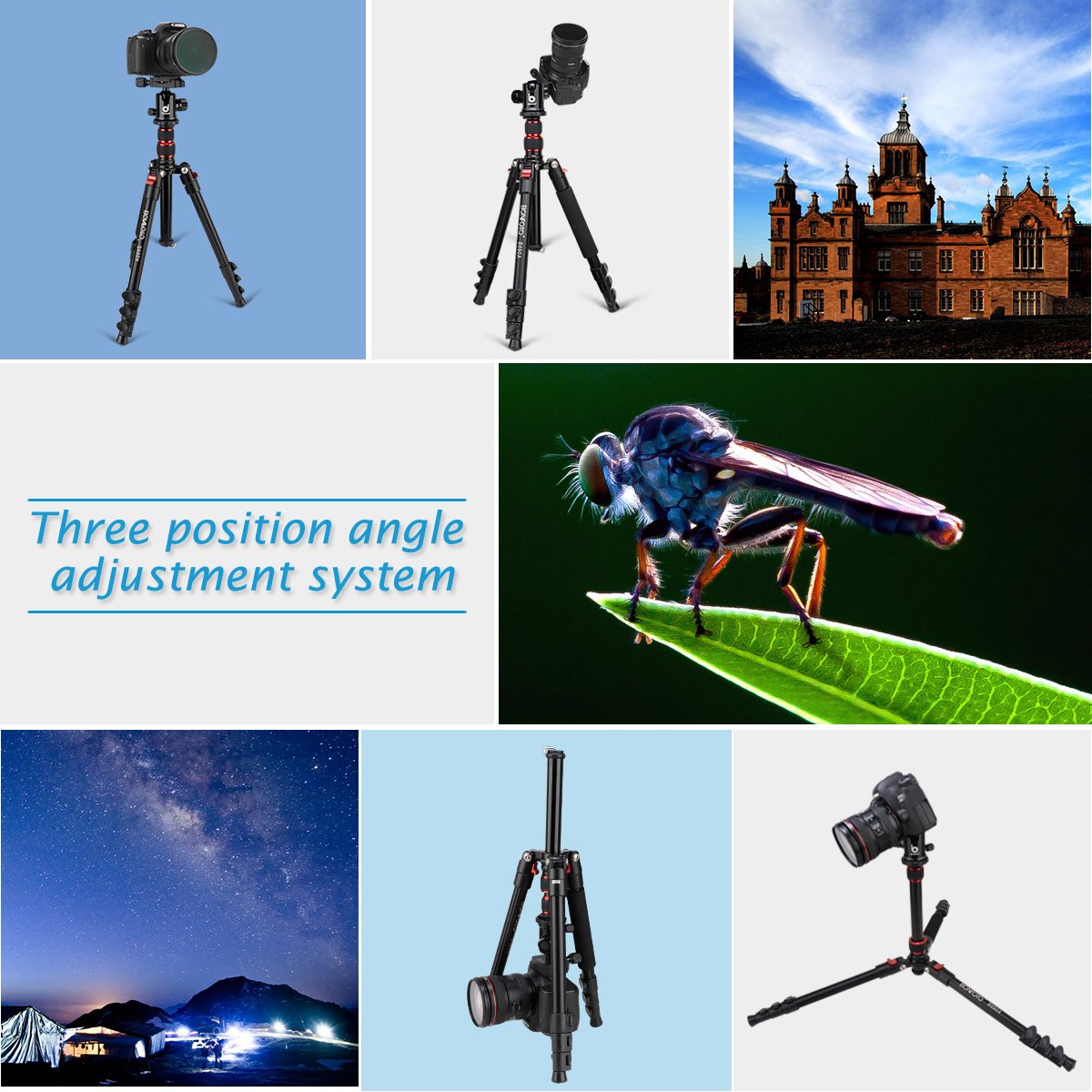 With quick shoe attachment, it is convenient to detach the tripod and the camera with one touch.