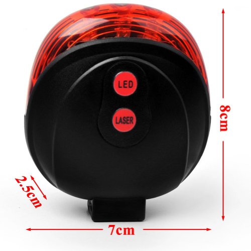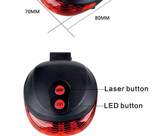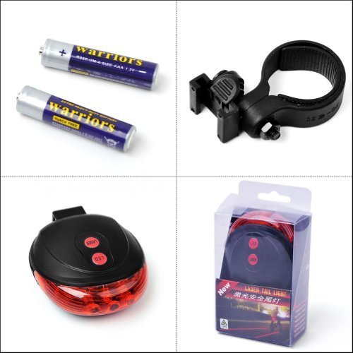 Studio : wealers Publisher : wealers Product Description This little laser beam tail light will ensure your safety while riding in the darkness. It has 5 LEDs and 2 laser bulbs. The LED and the laser work independently This safety light can be mounted on 20-36mm seat post. The length and position of the laser beam varies with the angle you mount the lamp, Package includes: 1 Bicycle Laser Beam Rear Tail Light Lam and 1 Bicycle Mount With 2 aaa Battery 0