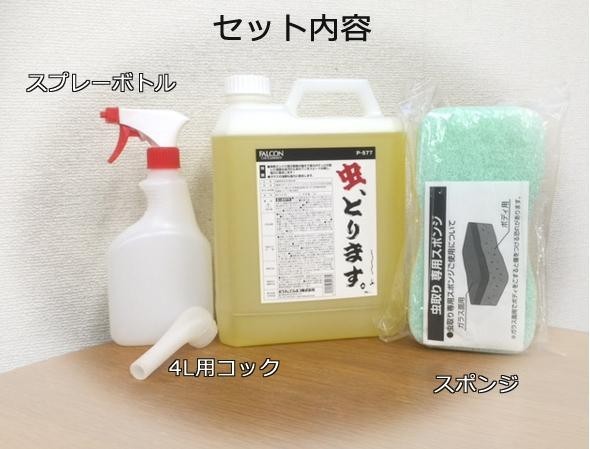 | 洗車で落ちにくい虫の死骸や固着した虫汚れを簡単に除去する洗浄剤です。自動車のボディ・ガラス・バンパー、ベッドライトやグリルに使用できます。 |