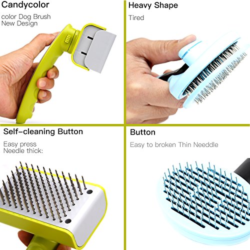 Dog Hair Brush, Hipidog Self-cleaning Slicker Brush Removes Tangled Knots, Loose Short and Long Hair with Massaging Effect for Dogs & Cats