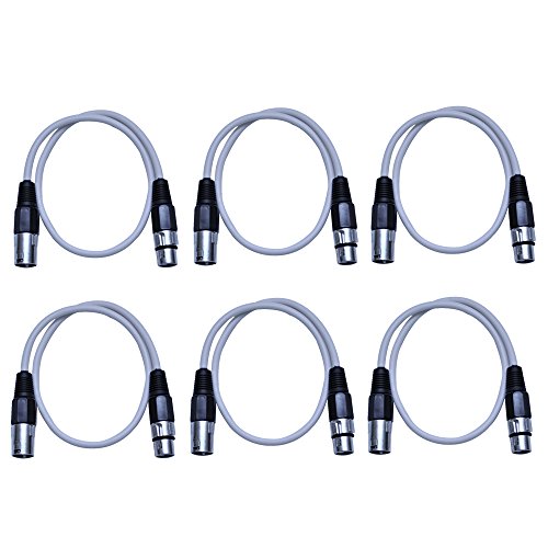 Seismic Audio SAXLX-2White-6Pack White 2-Feet XLR to XLR Patch Cable, 6-Pack