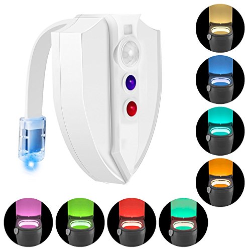 - 【Creative lighting design】-- The toilet lamps can change between 8 single colors or color-cycle, press the button to fix one single color that you desire, press again to let 8 colors rotate. Colors change randomly every 15 seconds and 120 seconds overall for one cycle. 8-color toilet light is more energy-saving and eco-friendly than 16-color one.
