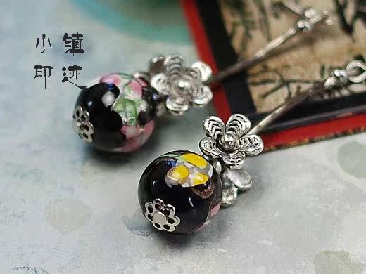 Specifications: porcelain beads diameter of about 1.3cm, Tibetan silver flower diameter of about 0.8cm, earrings total length of 6cm