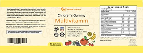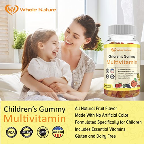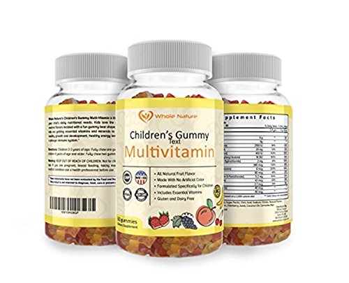 Whole Nature's Gummy's Multi-Vitamin is the #1 trusted source for your child's daily nutritional needs. Kids love the great taste, naturally sourced flavors molded with fun gummy bear shape. Parents can trust that kids are getting essential vitamins and minerals to support and maintain healthy growth and development, healthy energy levels, healthy eyes, and a stronger immune system.* Give your child a boost with our Multivitamin for children. These gummy multivitamins are great-tasting, all natural daily essential for overall wellness- formulated specifically for kids. It is gluten-free, dairy-free daily supplement is loaded with Vitamin A, C, D, E, B-6 and B-12, along with biotin, zinc, folic acid and more.Feature