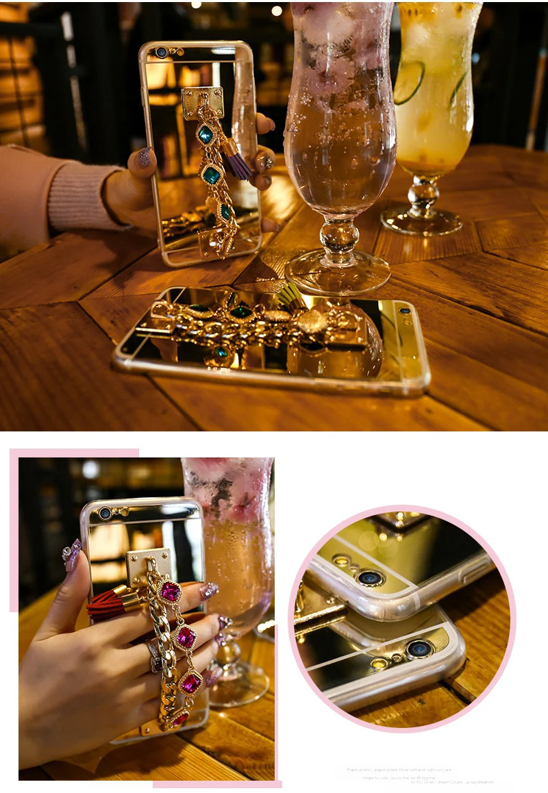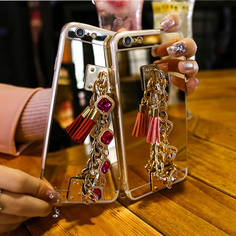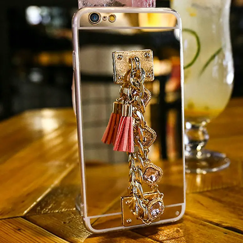 Features:Crystal Tassel mirror case