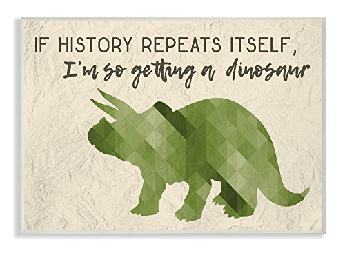 The Kids Room by Stupell I'm So Getting a Dinosaur Green Triceratops Wall Plaque Art, 10 x 15