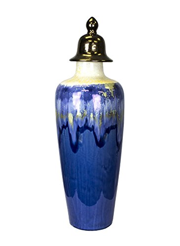 Sagebrook Home VC10358-04 Ceramic Temple Jar, 8.25" x 8.25" x 24.75", Blue