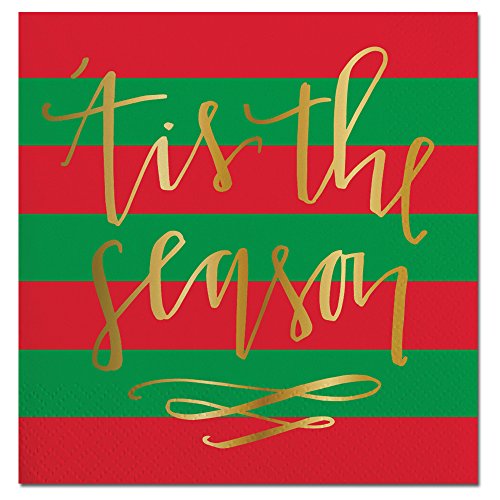 Red & Gold Holidays Cocktail Napkins 'Tis the Season by Slant Collection