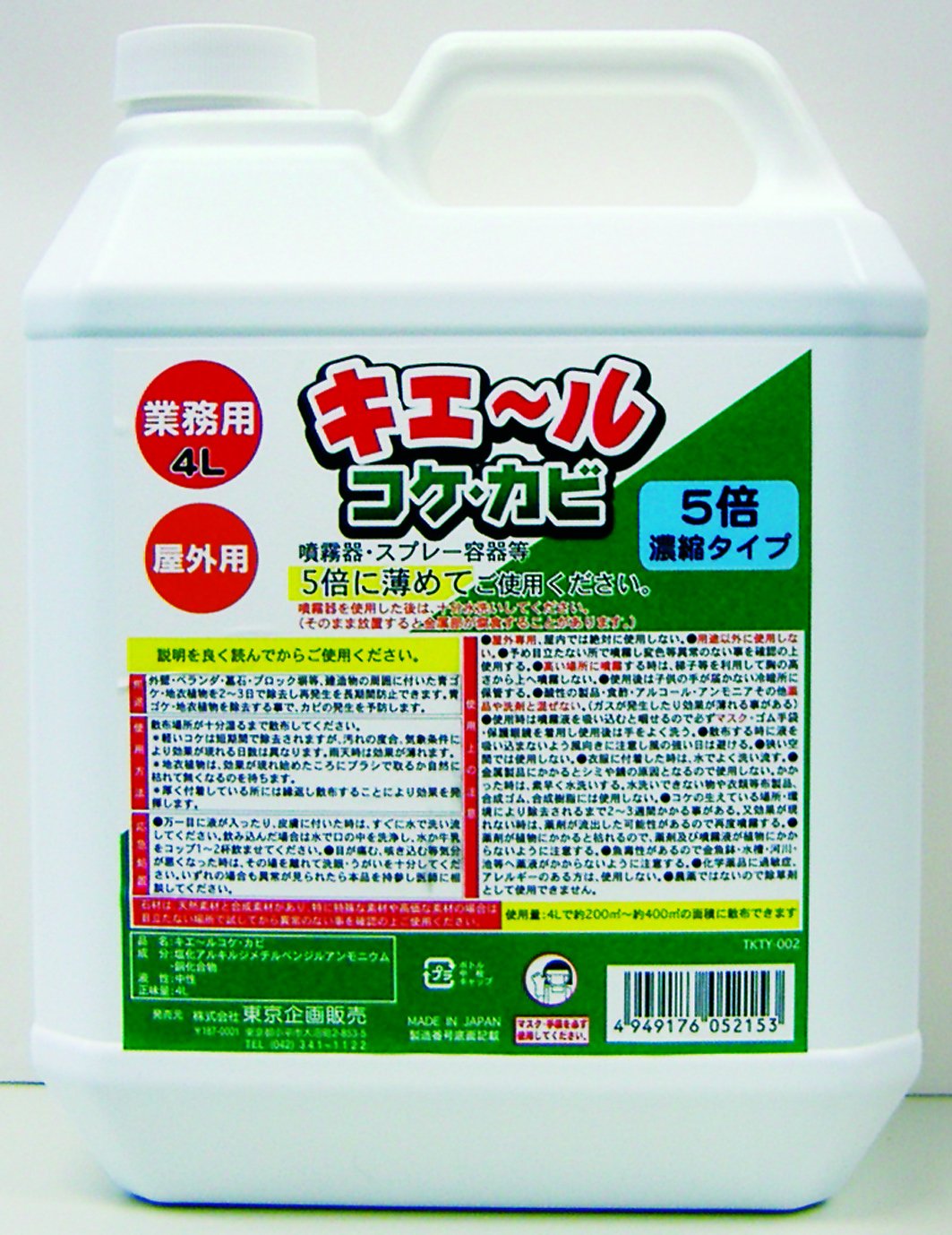 "Topplane Kieres moss mold 5-fold concentrated type 4L" is easily removable without rubbing, it is a long-lasting outdoor moss sticky mold remover.