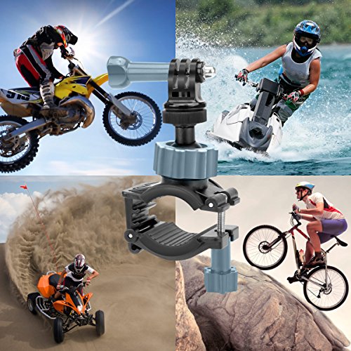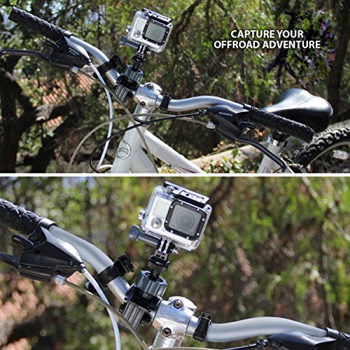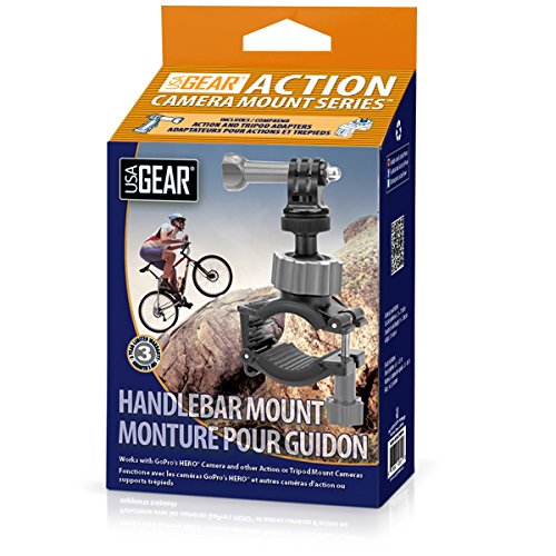 USA Gear Action Mount Series Whether you're surfing, sky diving, base jumping or just riding mad dunes, we have you covered. USA Gear offers many types of action mounts that attach to different surfaces, vehicles and even your body to accommodate all types of filming and photography. Every action mount comes with a 3-Year Manufacturer's Warranty. Handlebar Mount Positioning The mount is ideal for capturing footage while riding. Record yourself or the road with clamp-tight mounting. Perfect for cycling, motorcycles, ATVs, Jet skis and can even attach to small roll bars, seat posts or ski poles. How Does it Work? The clamp features 4-level adjustment to fit bars up to 1.5 inches. The interior curved design fits round bars and is lined with rubber grips to prevent turning. The ball joint head swivels 360 degrees so you can position your camera for the perfect shooting angle. All-in-One Kit The action mount adapter makes this handlebar mount compatible with all GoPro and action style cameras. The tripod screw head allows you to connect many compact cameras. This allows the handlebar mount to be a universal mounting system for action AND compact cameras. Works With: GoPro Hero4 , Hero3+ , Hero3 , Hero2 , Hero+ LCD , Hero Drift Stealth 2 , Ghost-S , HD Ghost HTC RE Camera Ion Air Pro Lite , Air Pro 3 , Air Pro 2 , Air Pro , Speed Pro , CamoCam , Adventure , The Game JVC ADIXXION GC-XA1 , ADIXXION GC-XA2 Toshiba Camileo X-Sports Veho Muvi HD , Muvi K Series Contour ROAM3 , ROAM2 , +2 360Fly Xiaomi Yi ... and MoreFeature