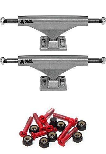 Studio : Theeve Publisher : Theeve Binding : Misc. Product Description These brand new Raw Theeve trucks have a 5.0" hanger, and a 7.75" axle. Theeve skateboard trucks are known for being some of the most versatile trucks on the market. Theeve Tiax Low Raw Skateboard Trucks - 5.0" Hanger 7.75" Axle (Set of 2) guarantees a smooth ride. NOTE: Sold as a set of two (2) trucks. Includes: One (1) set of two (2) Raw Low Theeve Tiax Low Raw Skateboard Trucks - 5.0" Hanger 7.75" Axle (Set of 2) plus Warehouse Skateboards Standard Phillips Head Red Skateboard Hardware Set - 1" (includes eight (8) bolts and eight (8) matching lock nuts). 0