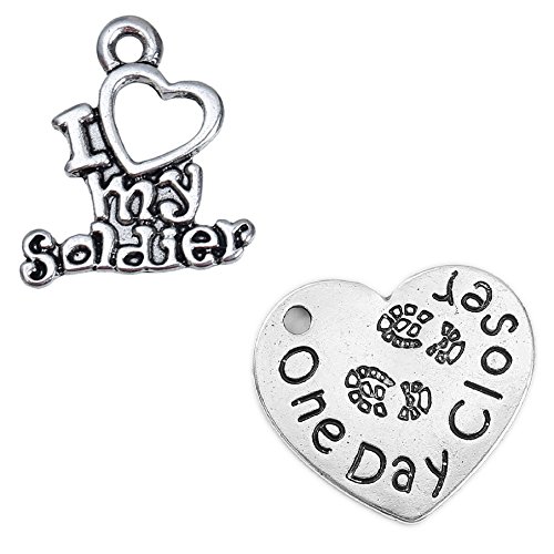 Soldier Charm Pendants, 10 One Day Closer and 20 I Love My Soldier - Military Mom Wife Daughter, Support Our Troops