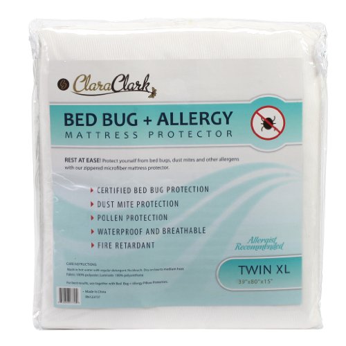 -. Title : Twin XL Size Clara Clark Hypoallergenic 100% Waterproof Washable Fire Retardant Mattress Cover, Protects From Bed Bugs, Dust Mites, Pollen, Mold And Fungus, Great for Asthma, Eczema And Allergy Sufferers, Available In 5 Sizes, Fits Mattresses Up To 15" Thick