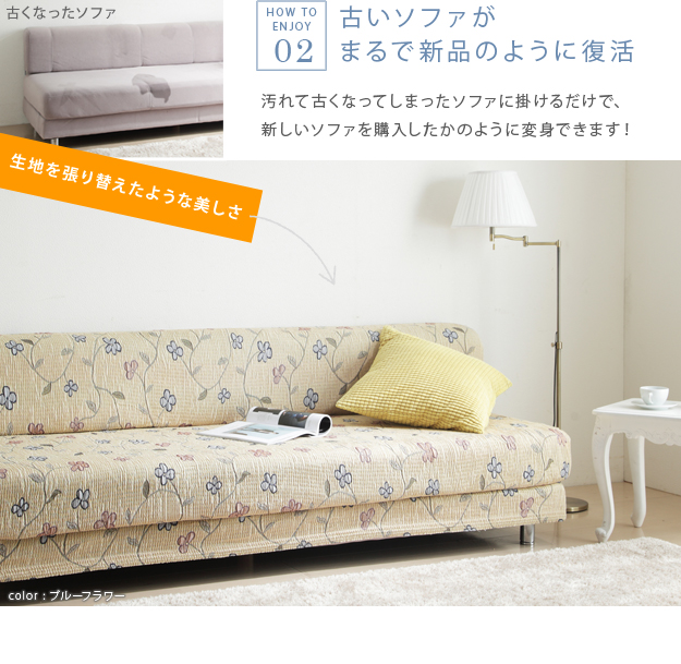 ●商品について:ジャガード織りの高級感あるスペイン製のソファカバー。横方向のストレッチ生地で高いフィット感です。お部屋を彩る5種類の花柄♪