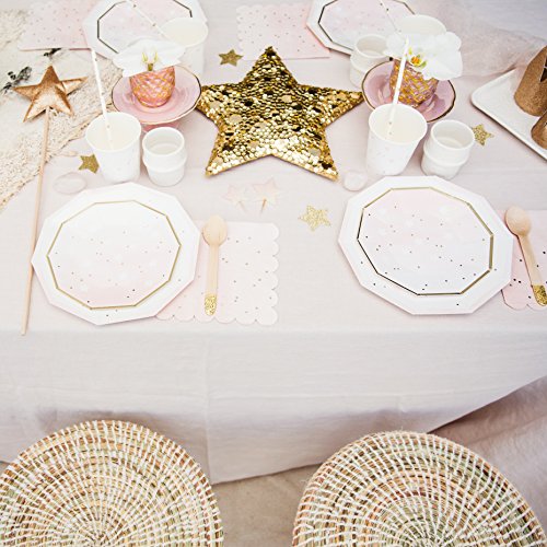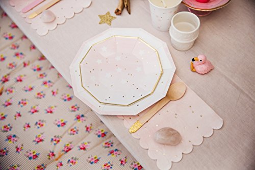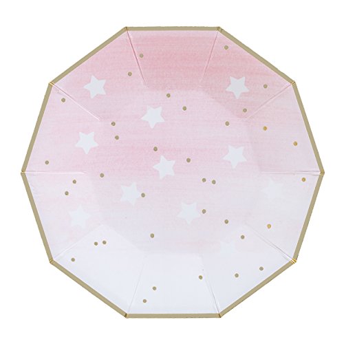 Fire and Creme Stars Foiled Party Paper Plates Gold White Pink Ombre- Pack of 8 (Small)