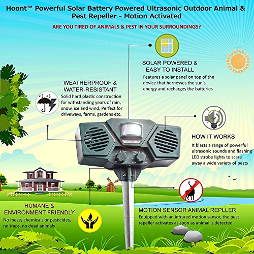 -. Title : Hoont Powerful Solar Battery Powered Ultrasonic Outdoor Pest and Animal Repeller - Motion Activated [UPGRADED VERSION]