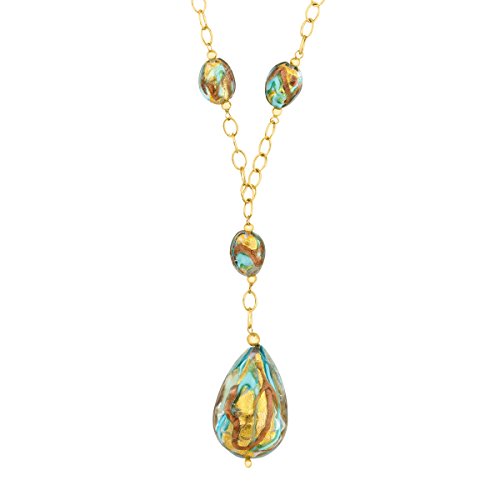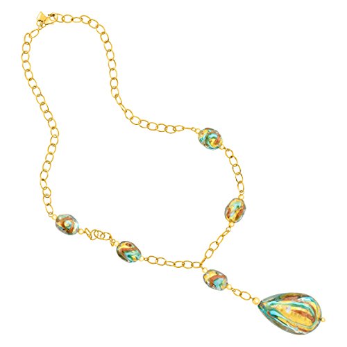 A statement-making piece packed with artisanal allure. Murano glass beads with tones of turquoise, copper and gold are strung on a necklace crafted in 14K gold-bonded sterling silver. Piece measures 3 by 7/8 inches with a total length of 17 inches.Feature