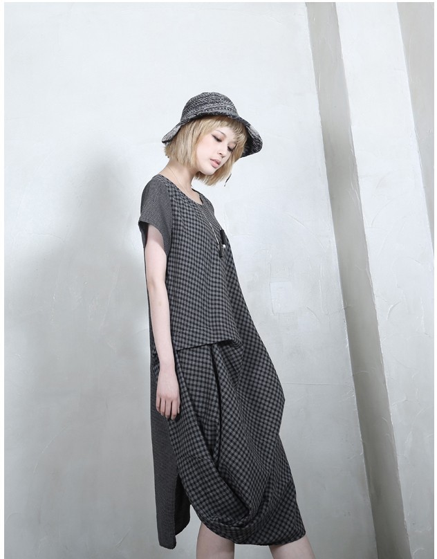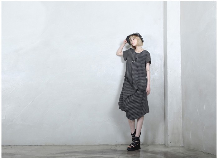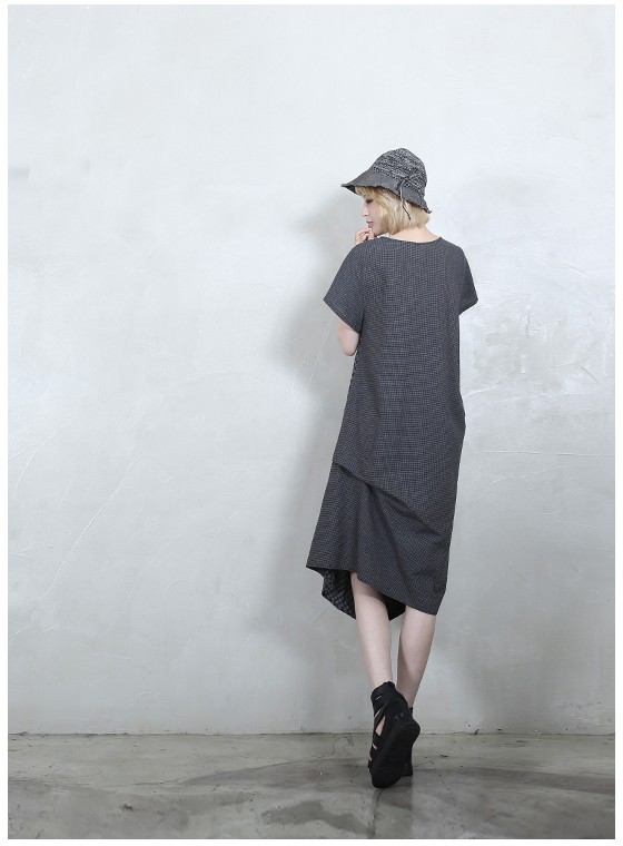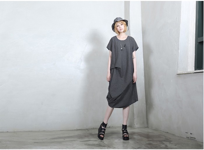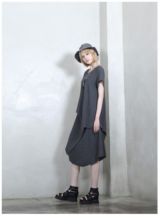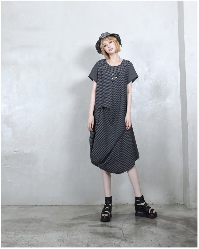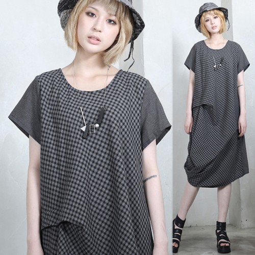 商品名:ワンピース レディース 膝丈 チェック 半袖 個性的 春 2018 モード系 個性的 40代 ファッション