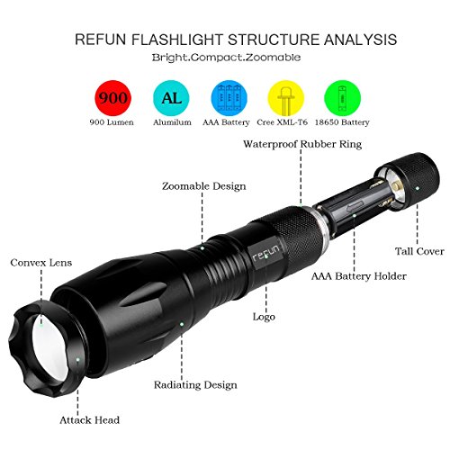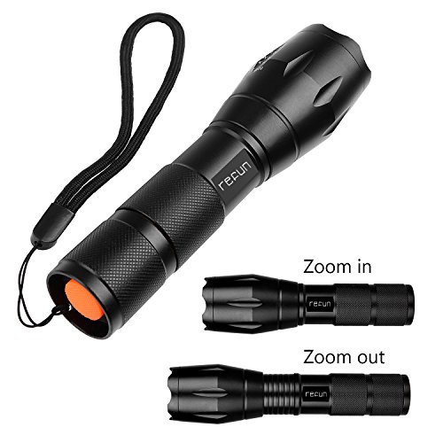 Tactical Led Flashlight Torch, Refun A100 High-Powered Flash Light, Rechargeable Tac Light, Water Resistant Handheld Flashlight with Zoom Function and 5 Modes