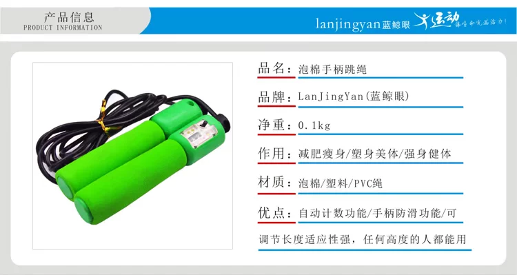 蓝鲸眼 海绵手柄跳绳 减肥美体 瘦身可计数跳绳 中考体育专用跳绳