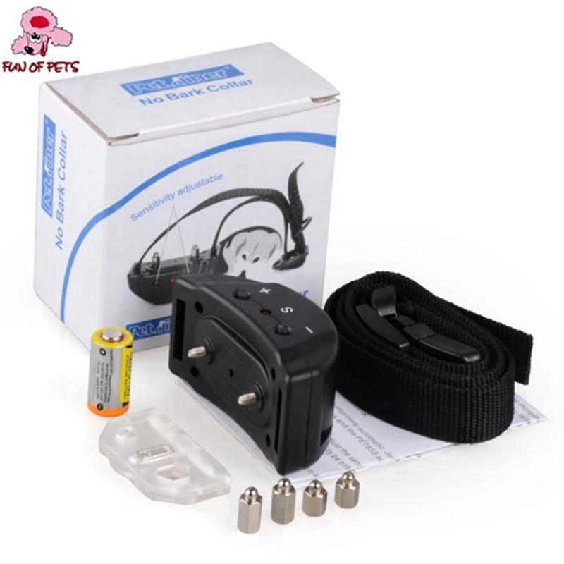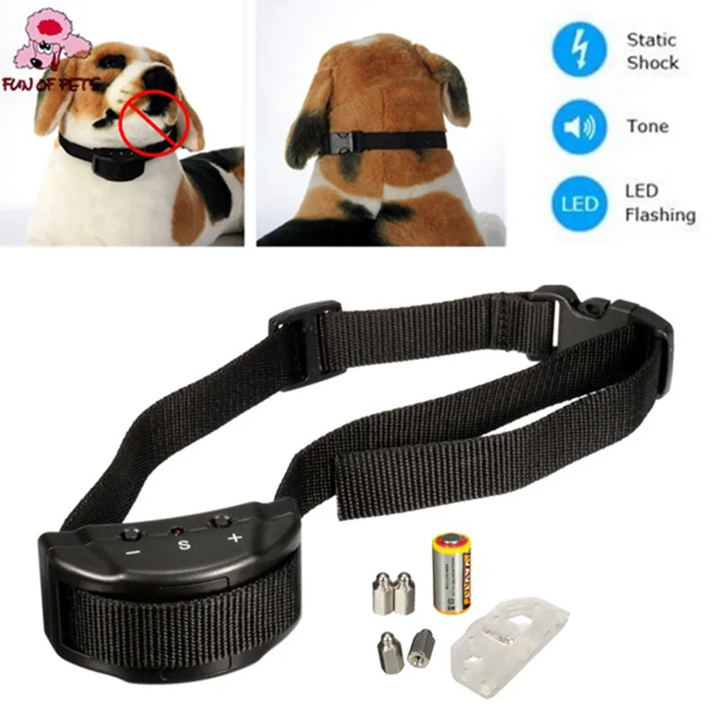 Item Type:Training Collars Brand Name:FUN OF PETS Material:Plastic Type:Dogs For:Dogs, Cats Color:Black Types:Electric Shock Vibration Dog Pet Training Collar Item: Anti Bark Stop Controller Dog Pet Training Collar Package:Color box Season:All Seasons