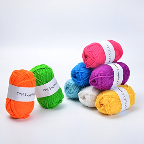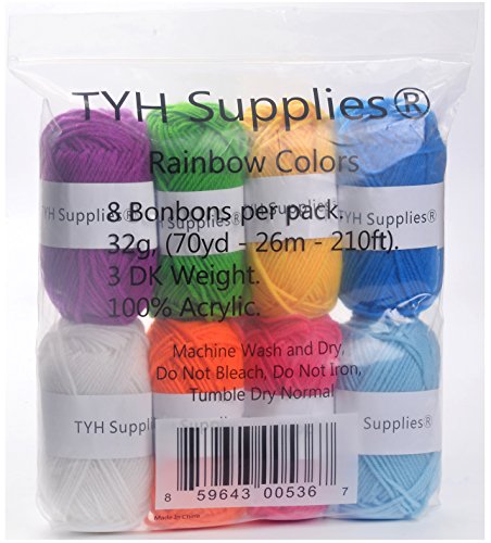 TYH Supplies 8 Skeins Bonbons Yarn Assorted Colors 32g (70yd) the yarn it is 100% Acrylic (Rainbow)