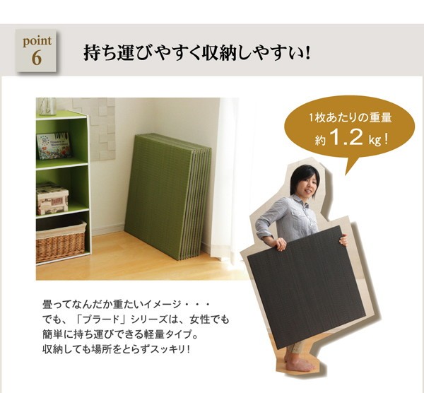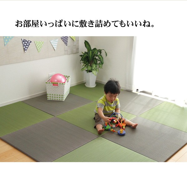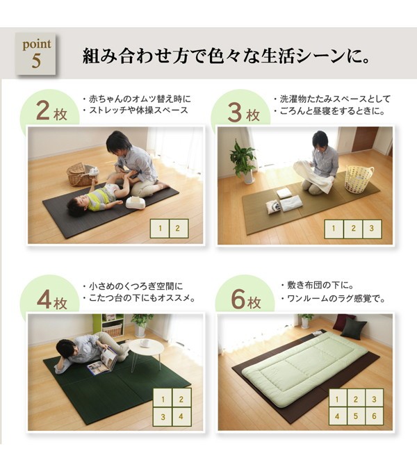 【素材】表地=い草(九州産) ※二・二目織 中材=フェルト15mm 裏=連結用ジョイント付(滑りにくい)