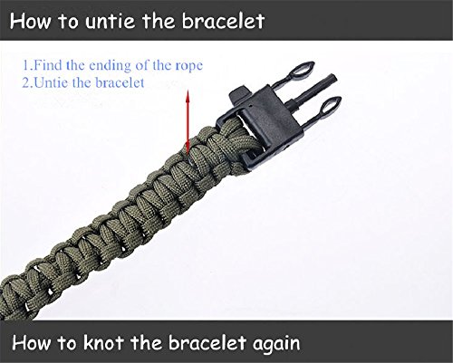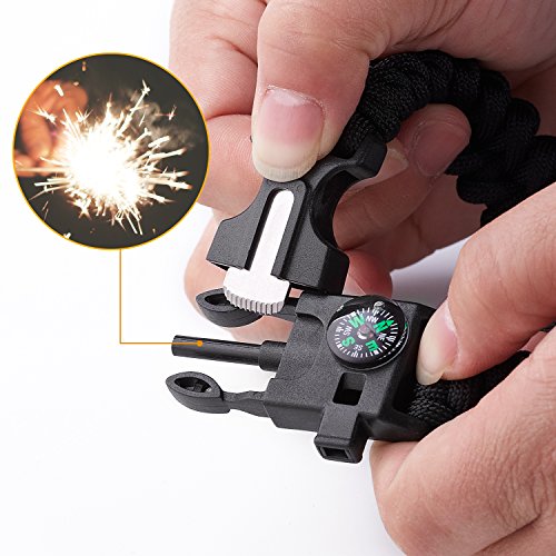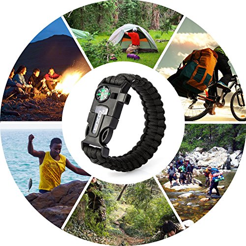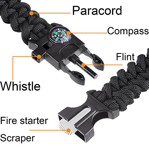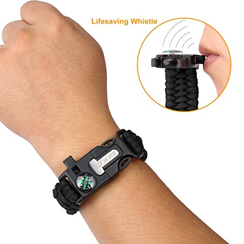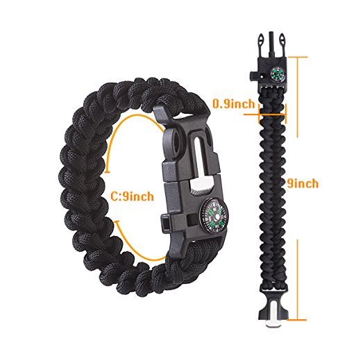 - XUANTAI Survival Multi Paracord Bracelet Embedded Compass, Fire Starter, Emergency Knife, Whistle, Rescue Rope for Hiking Traveling Camping