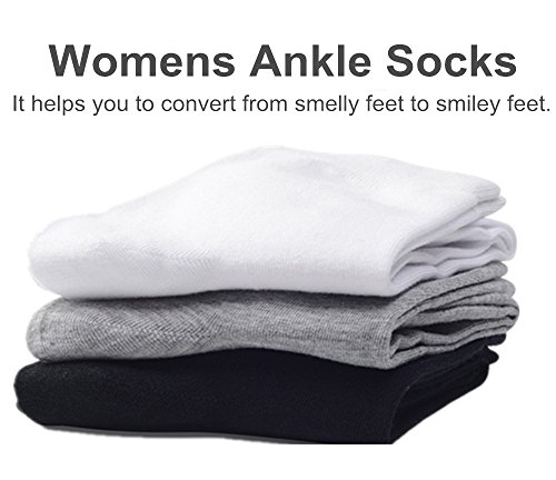 -. Feature : One thing men can not live without???? We are sure you guessed the right answer SOCKS !!!. So we decided to make women also happy by offering whopping 8 pairs of ankle socks at an unbeatable P.R.Ice. Similar quality socks are being sold at double the P.R.Ice. / Highly breathable socks keep the smile intact from head to toes .. literally. These socks, made from 80% cotton provides the comfort with 5% spandex providing you the necessary stretching. moisture-wicking cotton with mesh venting blend keeps feet dry, inhibit bacteria growth. It helps to get rid of embarrassing smelly feet. / These ankle sized socks are available in 3 different colors and 4 different options. You might fall short of other options in general, but with this socks bundle, you have options in abundance. / We don't let you be judged by size also. Our socks are designed to fit feet shoe size from 6-12 or socks size of 10-13. These are durable and machine washable. / Satisfaction guaranteed - Shop with confidence. Your satisfaction is our topmost P.R.Iority. If you do not like our socks for any reason, we offer a full refund or free replacement. No questions asked.