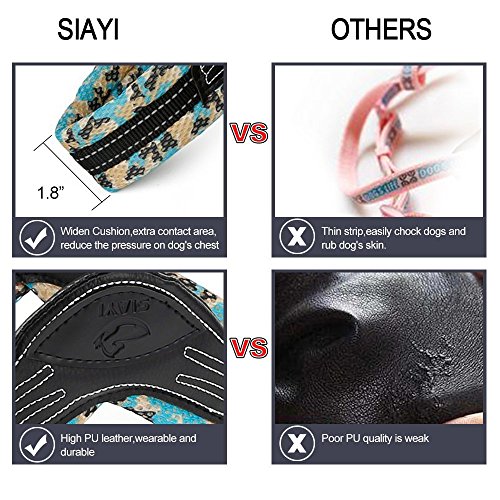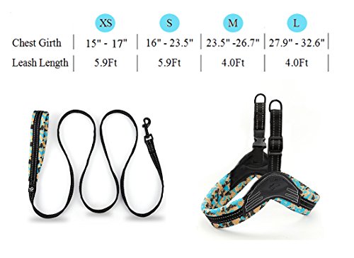 Studio : SIAYI Publisher : SIAYI Binding : Misc. Product Description DO YOU ENJOY TAKING YOUR DOG FOR WALKING OR NIGHT-RUNNING ? ARE YOU LEASH-TRAINING A VERY ACTIVE PUPPY ? SIAYI Harness and Leash Set is the perfect choice for spending time with your love pet while you walk or jog. Why the SIAYI Harness Leash Set is Better ? Made of polyester air mesh/ nylon/ PU leather - breathable light-weight, maxi comfort soft, durable safe Lovely camo color and reflectors - enhancing exposure in the dark, easily be found and also keep safe during night walks. Size Information: XS size harness:?14.0"-17.0" chest (under12lb) S size leash 0.62(W)*6.0(L) S size harness: 18.0"-23.0" chest (12lb-29lb) S size leash 0.62(W)*6.0(L) M size harness:?24.0"-27.0" chest (29lb-41lb) M size leash 0.75(W)*4.0(L) L size harness:?28.0"-33.0" chest (41lb-65lb) M size leash 0.75(W)*4.0(L) To make a safe and fit purchase, we suggest you could measure chest size of your doggie and add about 2-finger room and check the size chart to make right select.? Package Contents:? 1*SIAYI reflective harness 1*SIAYI sturdy nylon leash If there are any questions or further advice about our Harness Leash set, please directly contact us: E-mail: SIAYIPET@outlook.com Facebook group: https://www.facebook.com/groups/1784737635097565/