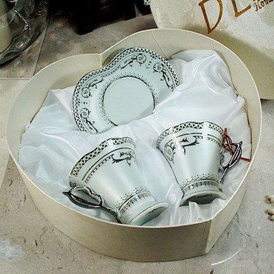 -. Title : 4 Piece Deco Design Espresso Set in Heart Box