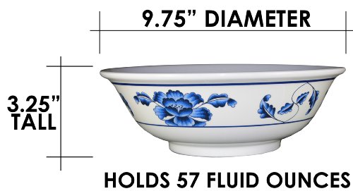 Includes One 57 Ounce / 9.75 Inch soup bowl + One oriental soup spoon + One pair of chopsticks