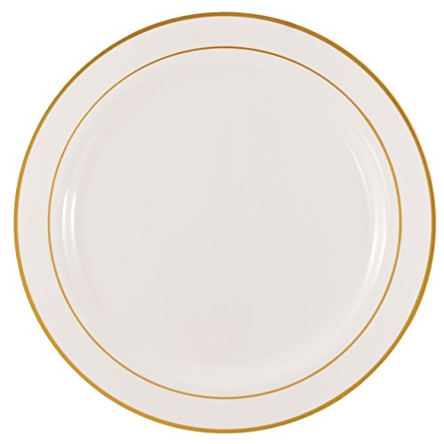 Kaya Collection - Disposable White with Gold Rim Plastic Round 10.25" Dinner Plates - 2 Pack (20 Plates)