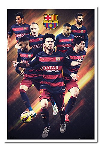 -. Title : Barcelona Players 2015/16 Season Poster Magnetic Notice Board White Framed - 96.5 x 66 cms (Approx 38 x 26 inches)